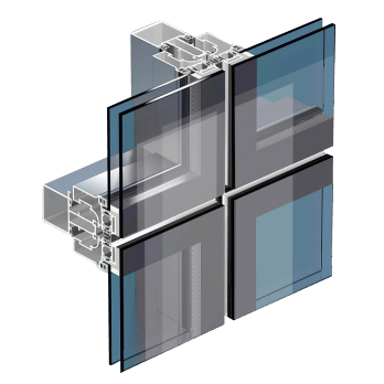 Это сочетание прочности стоечно-ригельных систем и презентабельности структурного остекления. В данном случае соединение стекла или стеклопакета с несущим профилем осуществляется тонкими прижимными штапиками, окантовывающими стекло по всему периметру и минимально перекрывающими его внешнюю поверхность. В отличие от структурной, такая система позволяет использовать большие по площади стеклопакеты и интегрировать в фасад открывающиеся элементы.